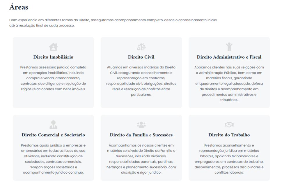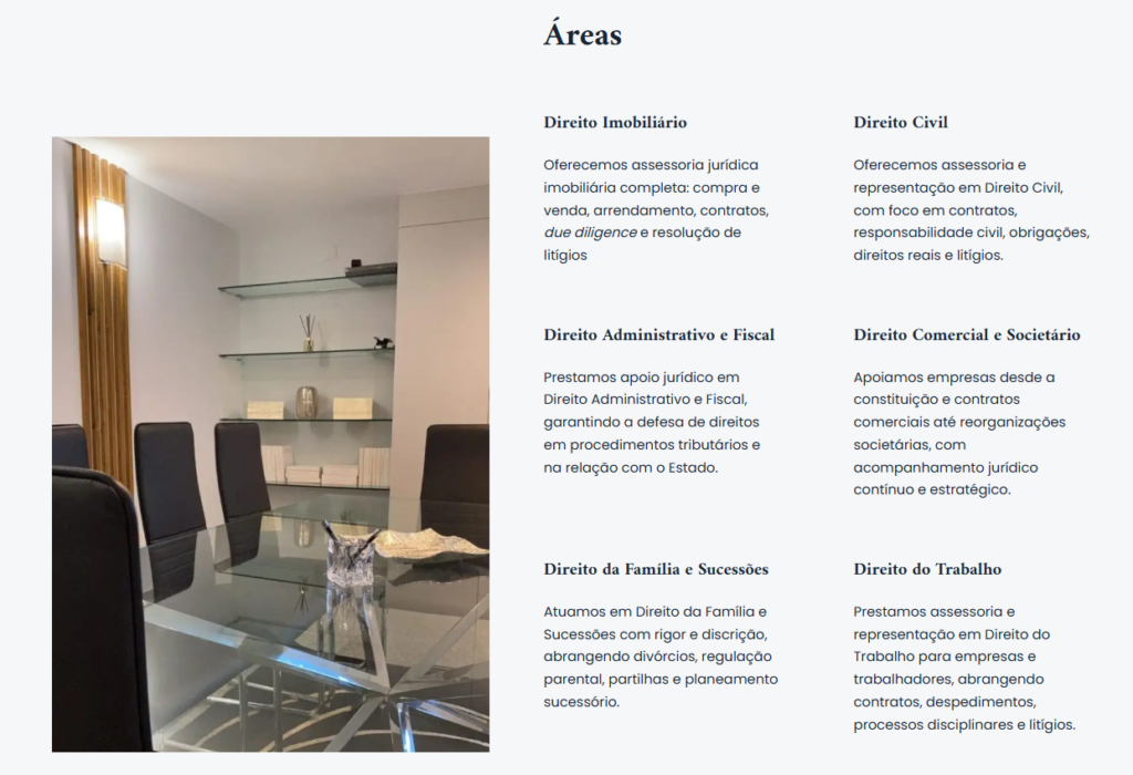 Mais do que um cartão de visita, jccass.pt posiciona a sociedade como um parceiro estratégico e proativo. O design limpo e a comunicação direta eliminam o ruído visual, transformando a complexidade legal numa experiência de navegação segura, transparente e focada nas necessidades do cliente.